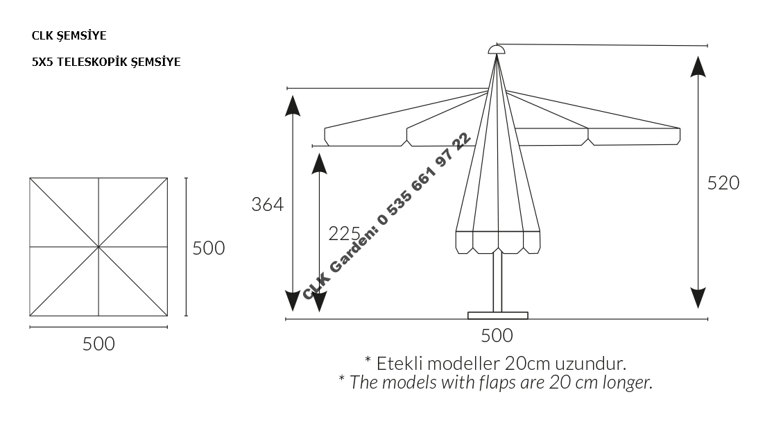 CLK 5×5 Metre Teleskopik Şemsiye İletişim Bilgileri: