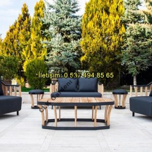 CLK Garden Trento Alüminyum ve Ahşap Iroko Bahçe ve Balkon Mobilya Oturma Takımı 3+1+1+OS