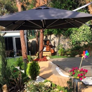 CLK Mykonos Şemsiye 3×3 Metre Alüminyum Antrasit Yandan Kollu Dirsekli Bahçe Cafe Şemsiyesi