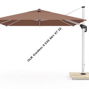 CLK Mykonos Şemsiye 3×3 Metre Alüminyum Kahverengi Yandan Kollu Dirsekli Bahçe Cafe Şemsiyesi
