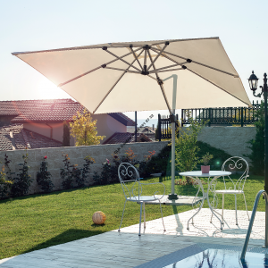 CLK Mykonos Şemsiye 3×3 Metre Alüminyum Krem Yandan Kollu Dirsekli Bahçe Cafe Şemsiyesi
