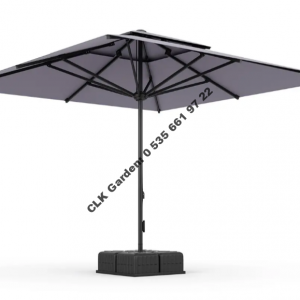CLK 330×330 Mega İpli Bacalı Küp Bidonlu Set Şemsiye Antrasit Bahçe Otel Cafe Şemsiyesi