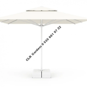 CLK 330×330 Mega İpli Bacalı Küp Bidonlu Set Şemsiye Krem Bahçe Otel Cafe Şemsiyesi